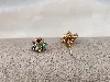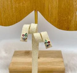 Boucle d’Oreilles puces pl-or chacune ornée de 4 oxydes de couleur