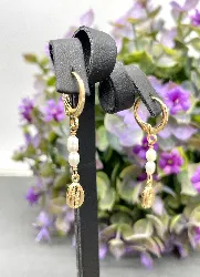 | Titre complet | 330533 Boucles d'oreilles en plaqué or chacune ornée de 2 perles de culture et un motif coquillage pendants |