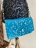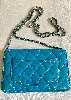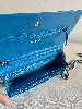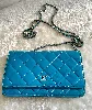 Chanel wallet on chain en cuir vernis bleu canard et métal argenté