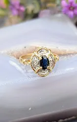 Bague 2 ors centrée d'un Saphir ovale entouré de petits diamants Or 750 Millième (18 CT) 3,06g