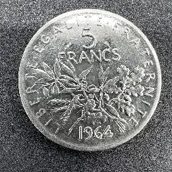 Pièce 5 francs Semeuse 1964 Argent 835 Millième 12,03g